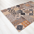 Elegant teppe i patchwork-design. Det er laget i naturlige fargetoner omgitt av patchwork-sting. Teppet er glattvevd i mykt syntetisk materiale. Dette gjÞr teppet bÄde behagelig Ä hvile fÞttene sine pÄ, og enkelt Ä hÄndtere ved rengjÞring.