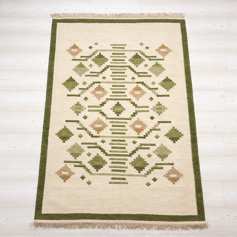 Ängsö er et hĂ„ndvevet ullteppe med stilrent mĂžnster. Det er solid vevd tvers gjennom, slik at det kan snus. Laget av 100% ull, noe som gjĂžr det mykt, holdbart og smussavstĂžtende.