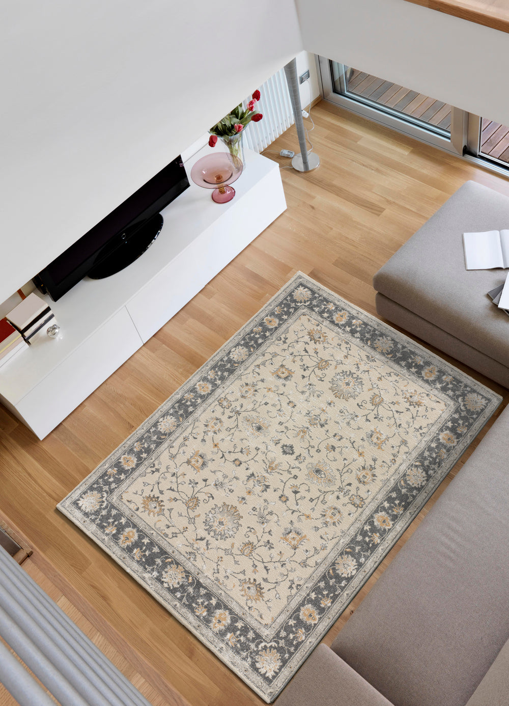 Sensation Beige er et teppe med klassisk orientinspirert mĂžnster.
