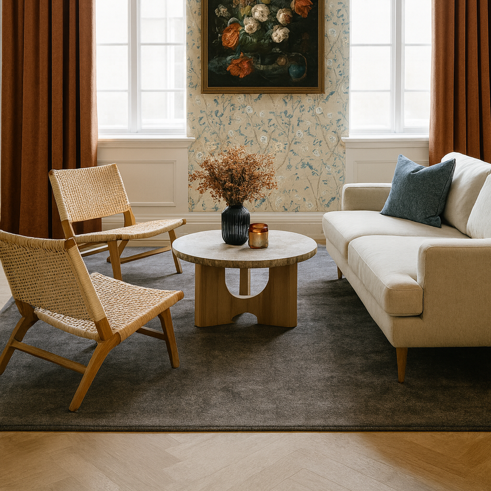 Velvet har en tett, flĂžyelsmyk overflate som gir et rolig og helhetlig uttrykk. Fargetonen er jevn, og overflaten har en fin glĂžd uten Ă„ dominere rommet.